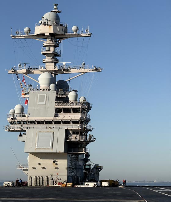 The flight deck of the USS Gerald R. Ford aircraft carrier.